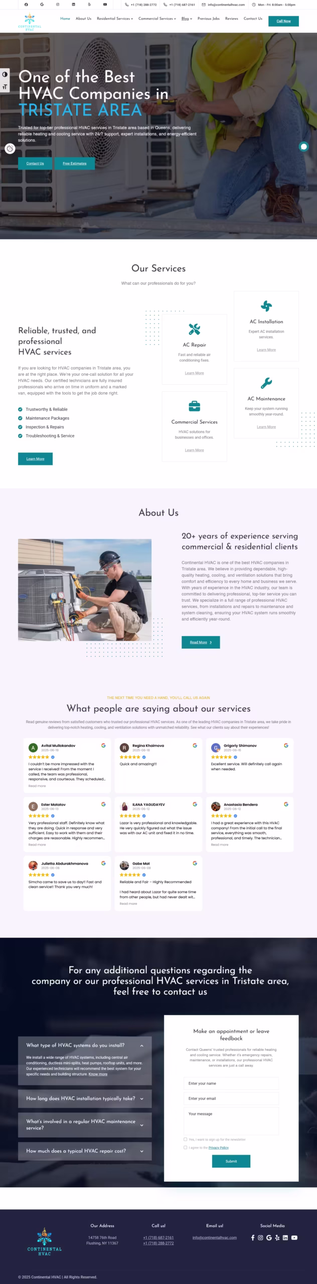 For Continental HVAC, I took their outdated site with a modern booking system and mobile optimization. Result? A 30% drop in bounce rates and a 20% uptick in online inquiries within two months.